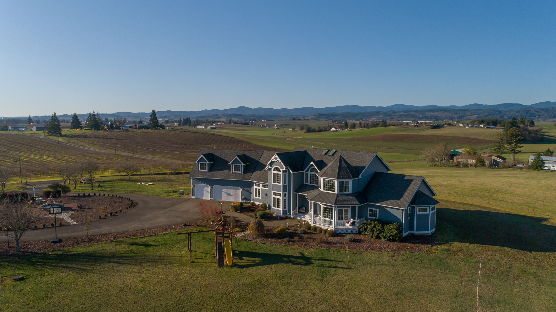 NESTLED IN THE HEART OF YAMHILL’S WINE COUNTRY, this custom-built piece of heaven sits on 7.01 acres of Oregon land. As you exchange jubilee with the company of your friends and family, what memories will you unfold under these roofs? Inevitably, nothing, but laughter, love, and an ardor for life will enter this home.