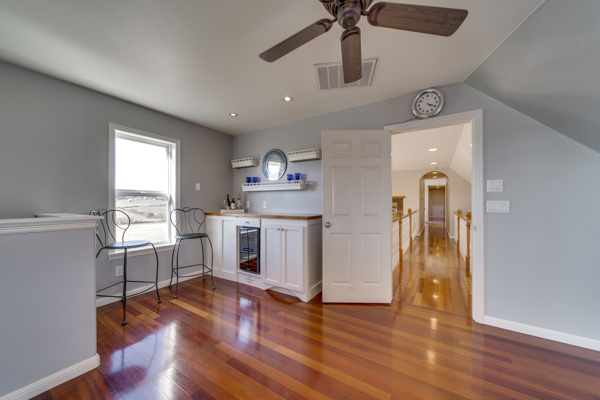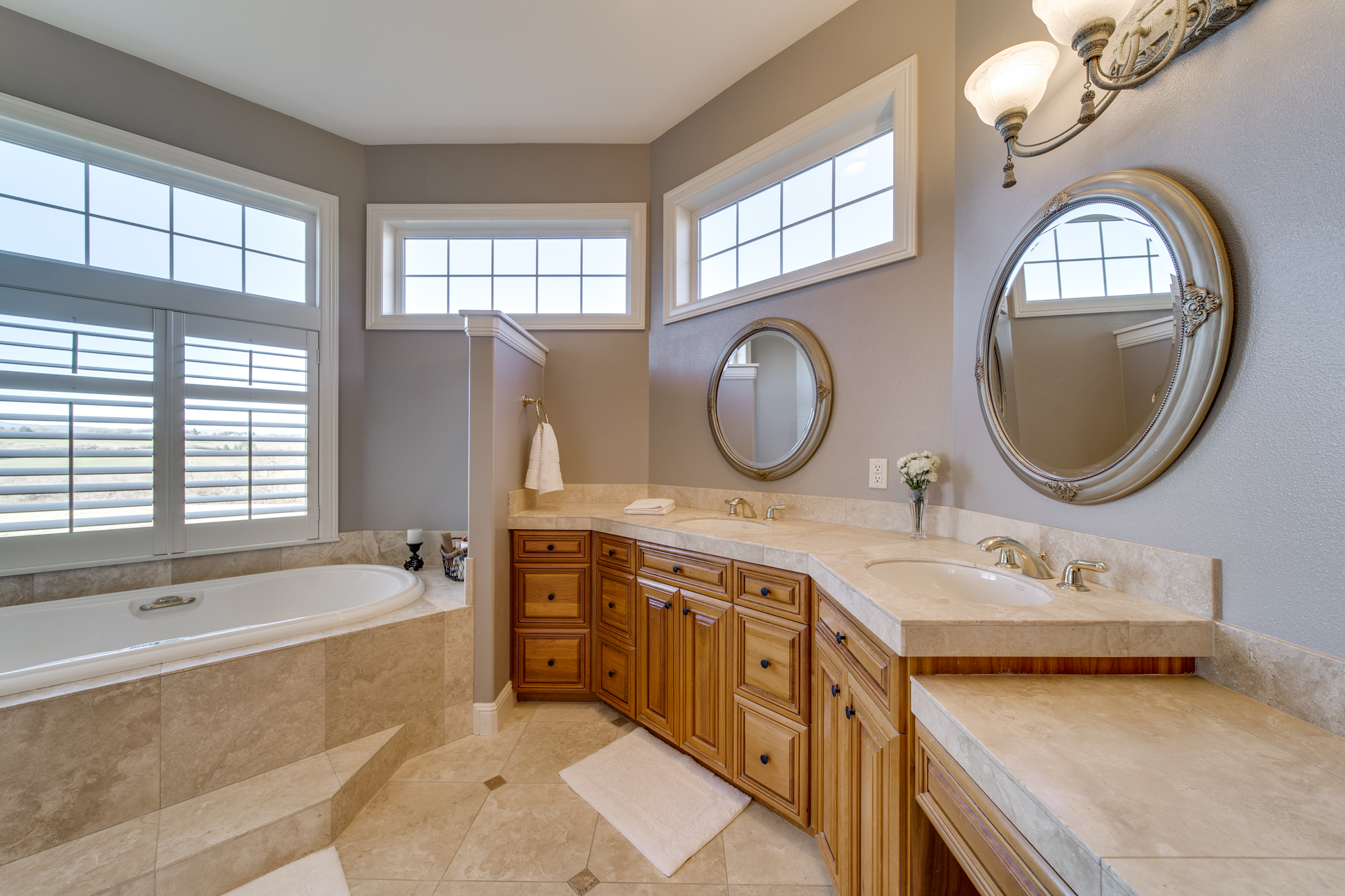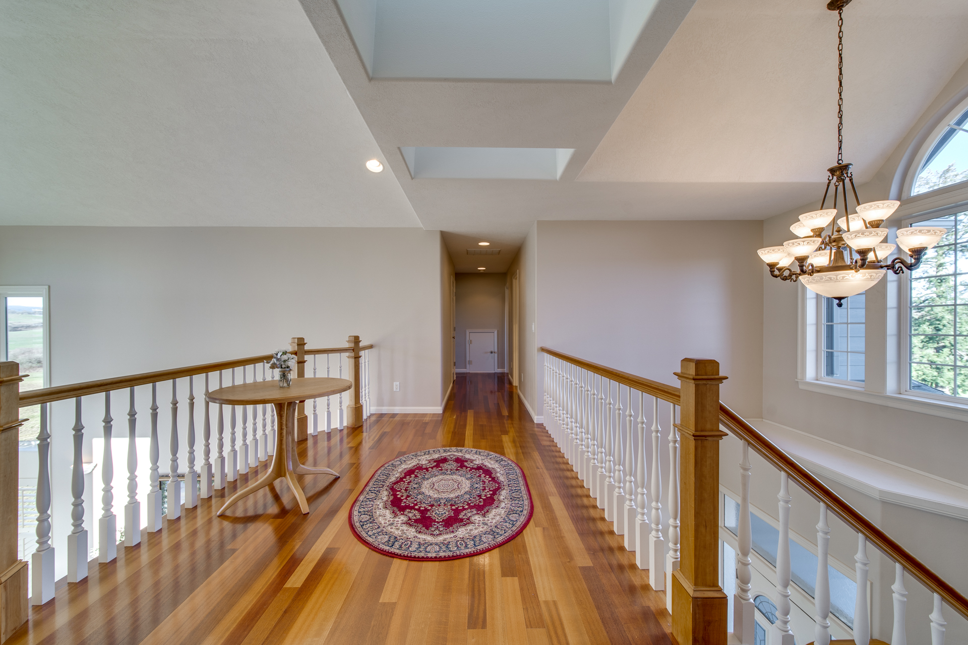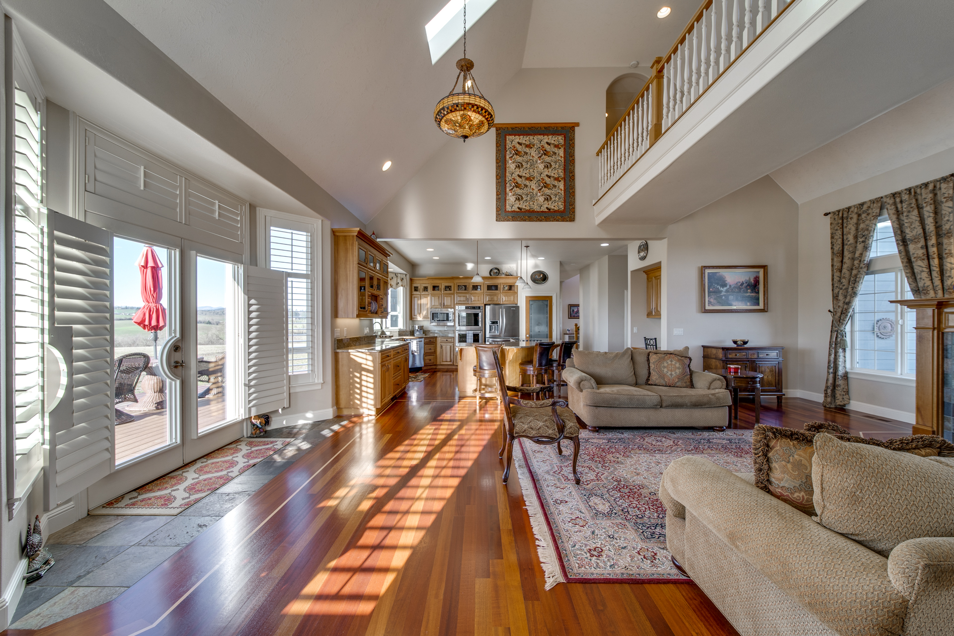 The clean, airy interior extends into the main-level master suite where you’ll be pleasantly surprised by the additional sitting room looking out towards the breathtaking valley. The luxurious-ness of the suite is bolstered with a large walk-in closet and a master bathroom carefully embellished with rich trhavertine tile. Upstairs features four bedrooms and two bathrooms connected by an extensive open walkway. A bonus room is included, completed with a veranda so you can enjoy those golden summertime sunsets.