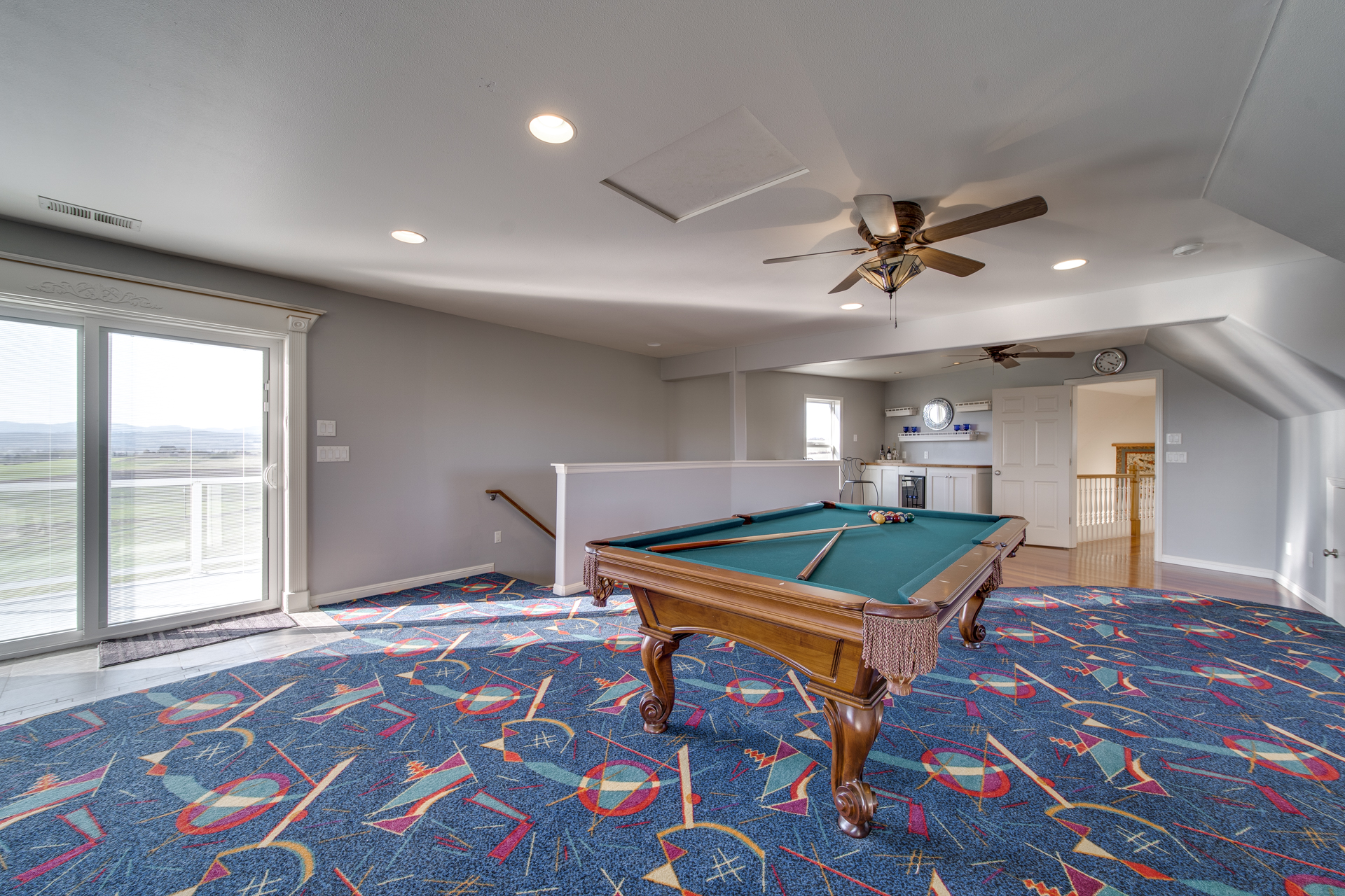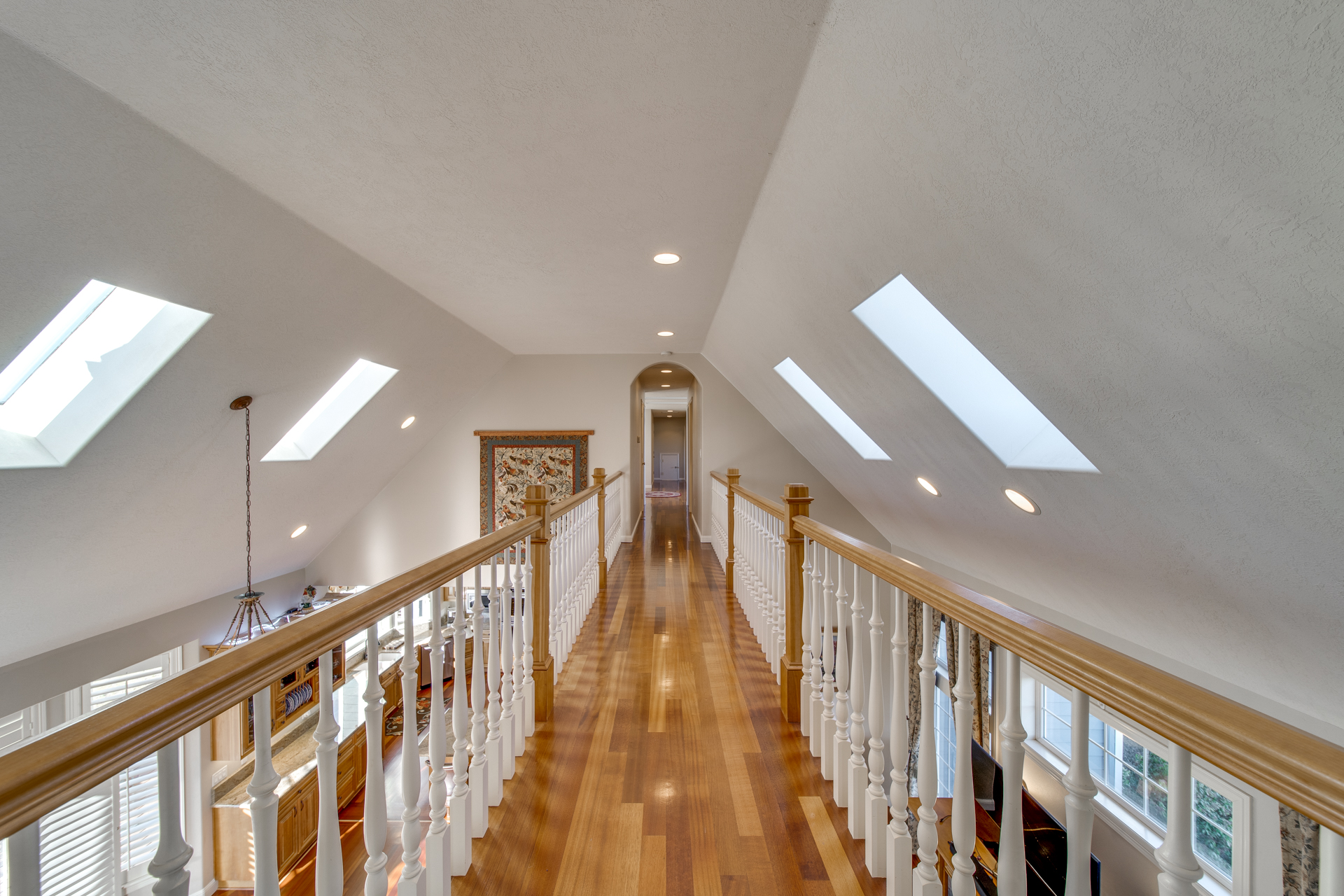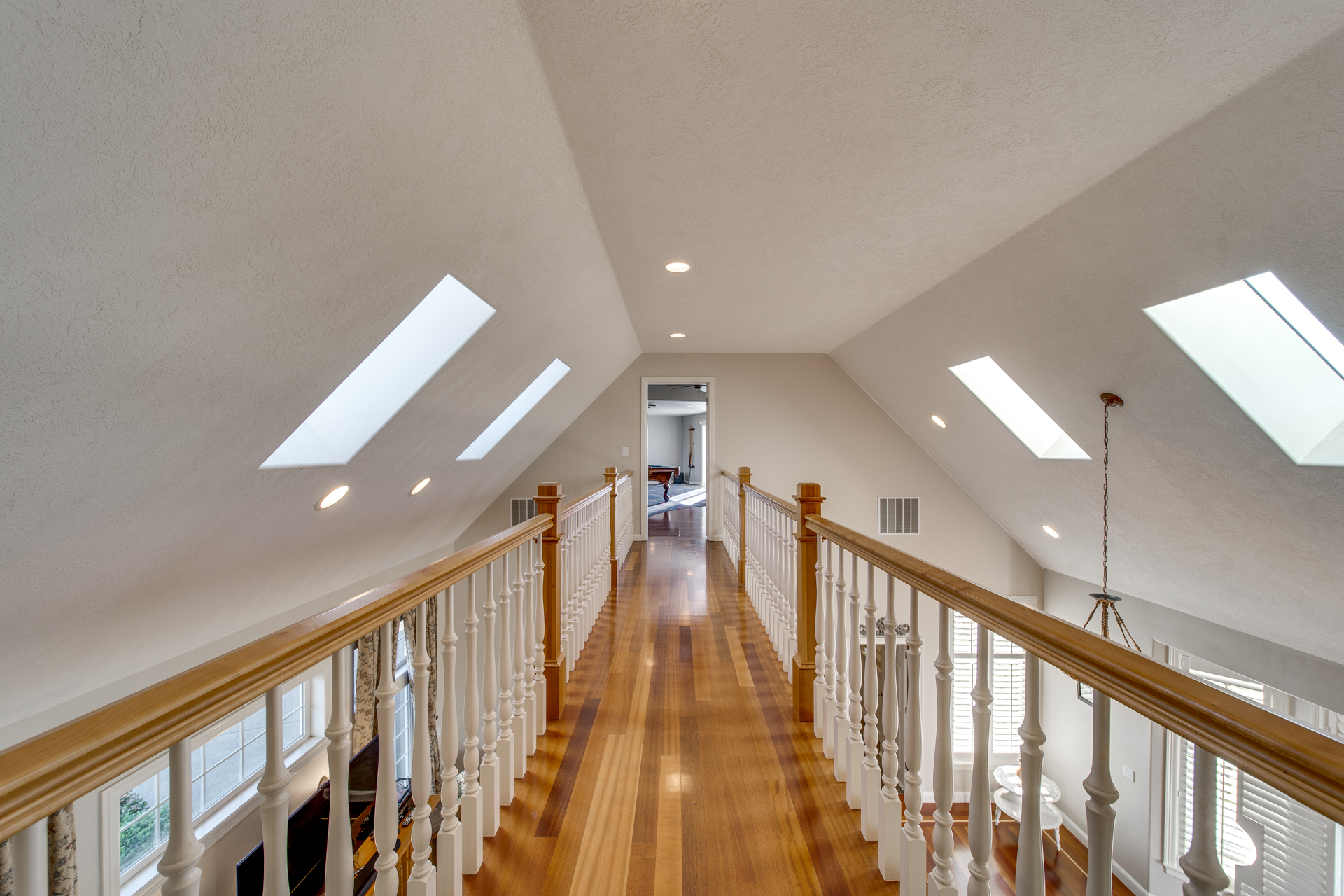 The clean, airy interior extends into the main-level master suite where you’ll be pleasantly surprised by the additional sitting room looking out towards the breathtaking valley. The luxurious-ness of the suite is bolstered with a large walk-in closet and a master bathroom carefully embellished with rich trhavertine tile. Upstairs features four bedrooms and two bathrooms connected by an extensive open walkway. A bonus room is included, completed with a veranda so you can enjoy those golden summertime sunsets.