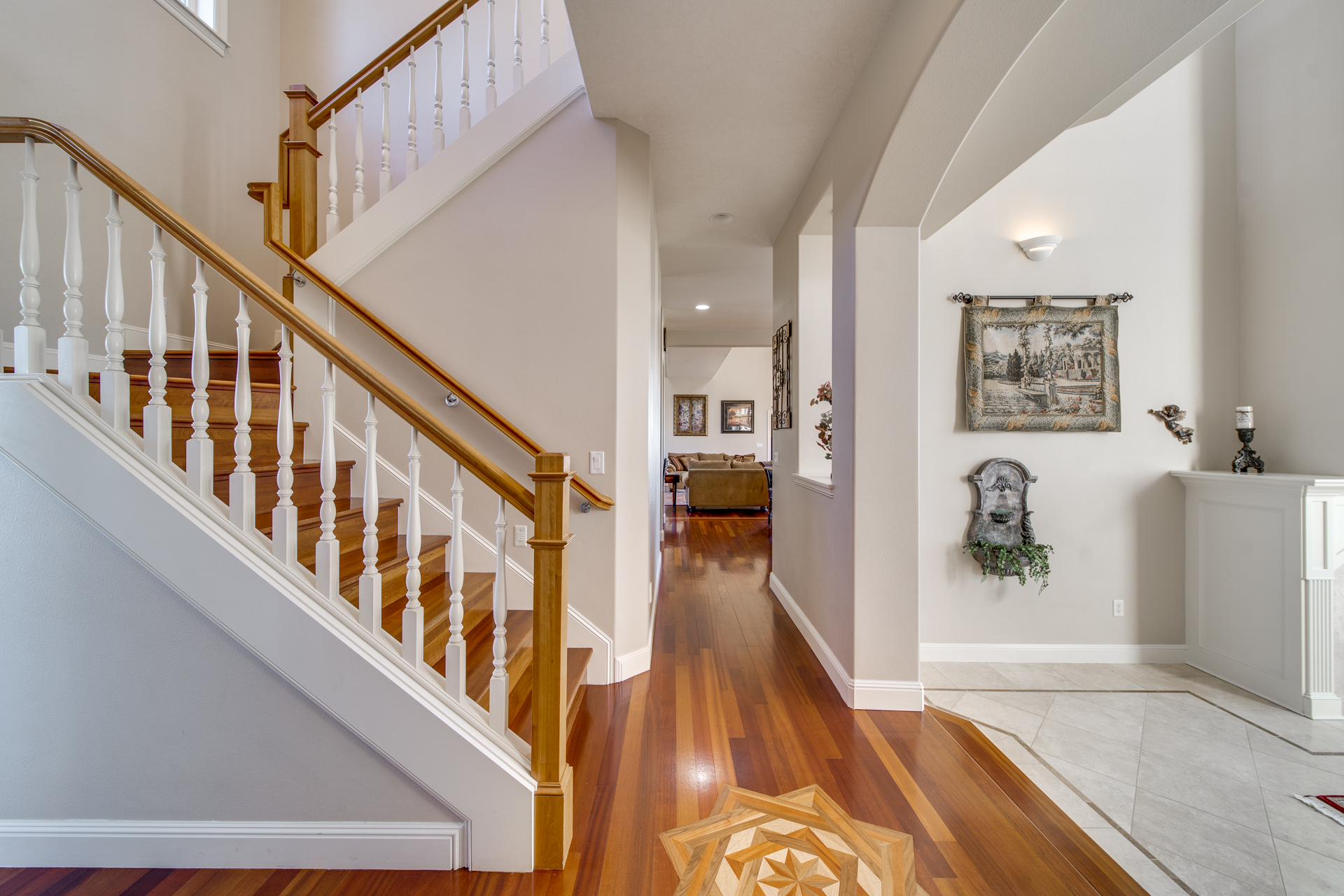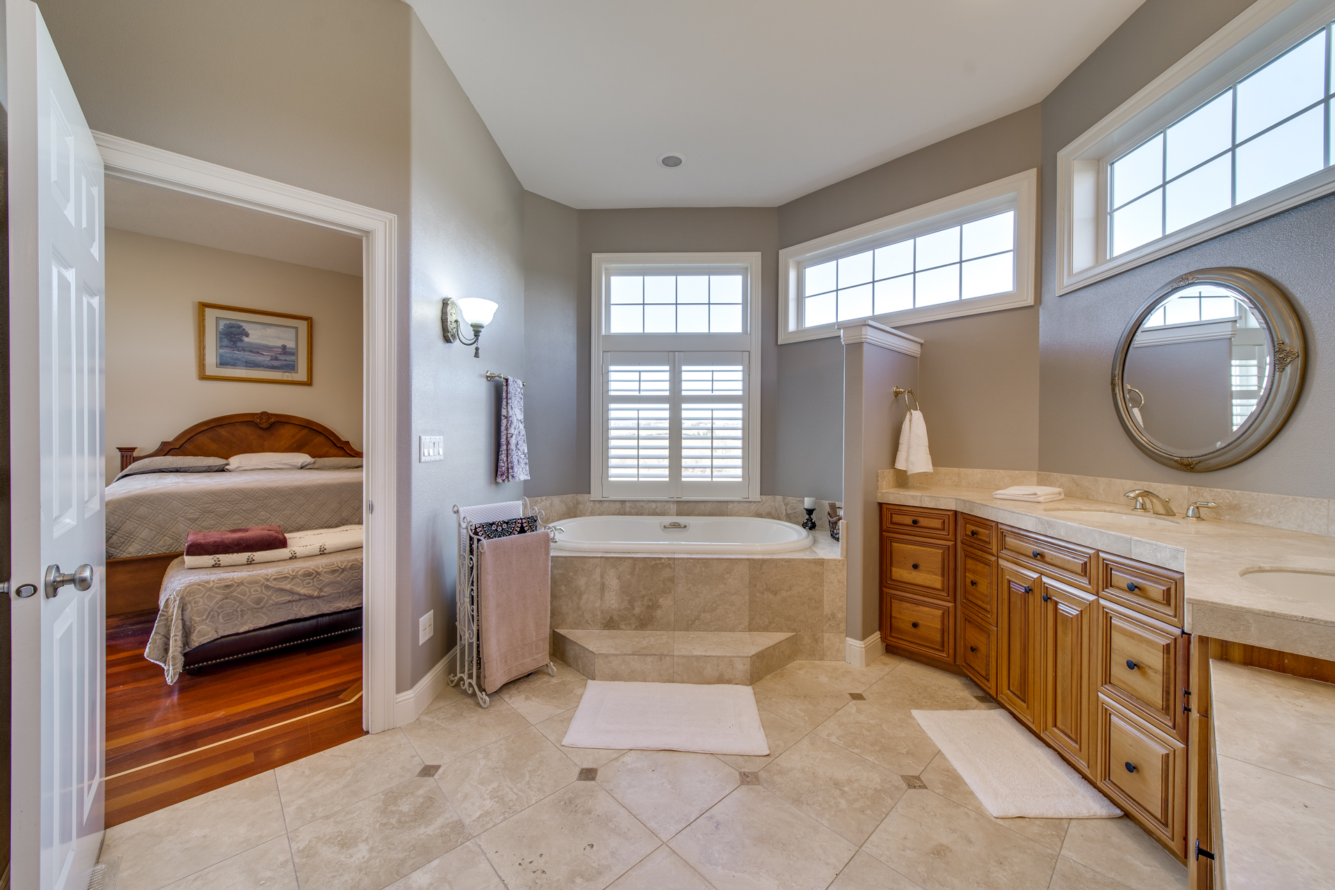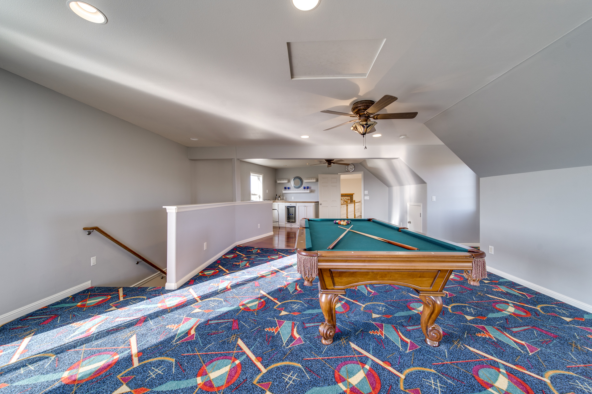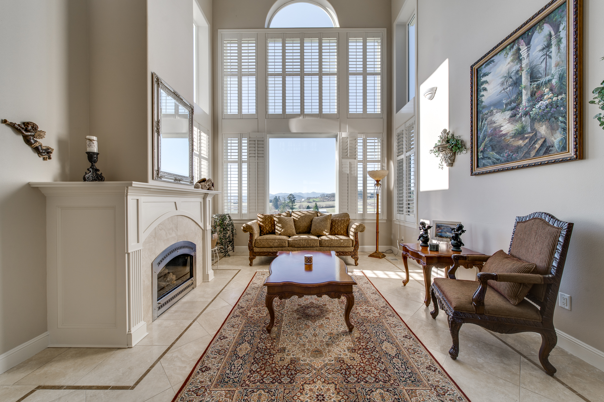 The clean, airy interior extends into the main-level master suite where you’ll be pleasantly surprised by the additional sitting room looking out towards the breathtaking valley. The luxurious-ness of the suite is bolstered with a large walk-in closet and a master bathroom carefully embellished with rich trhavertine tile. Upstairs features four bedrooms and two bathrooms connected by an extensive open walkway. A bonus room is included, completed with a veranda so you can enjoy those golden summertime sunsets.