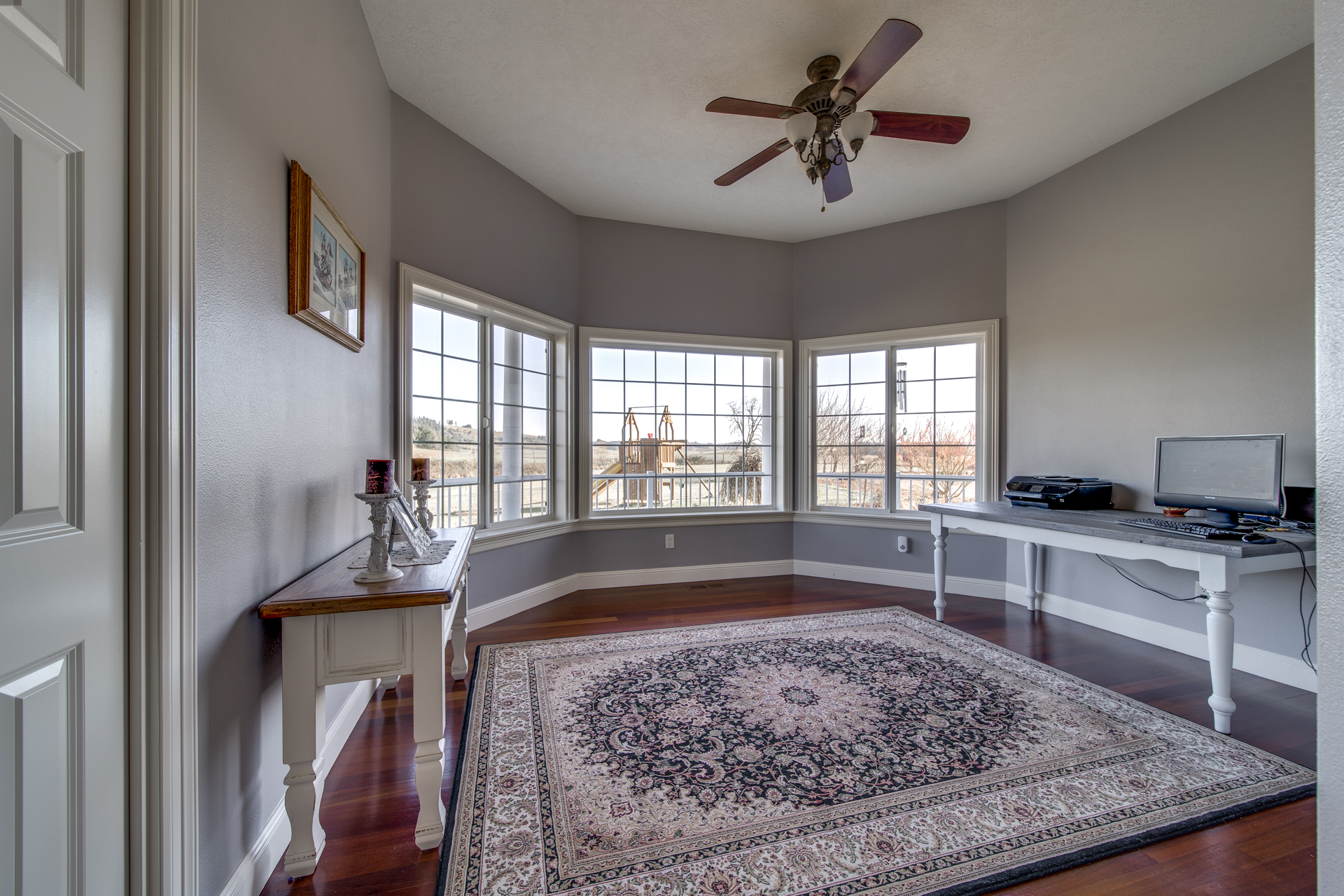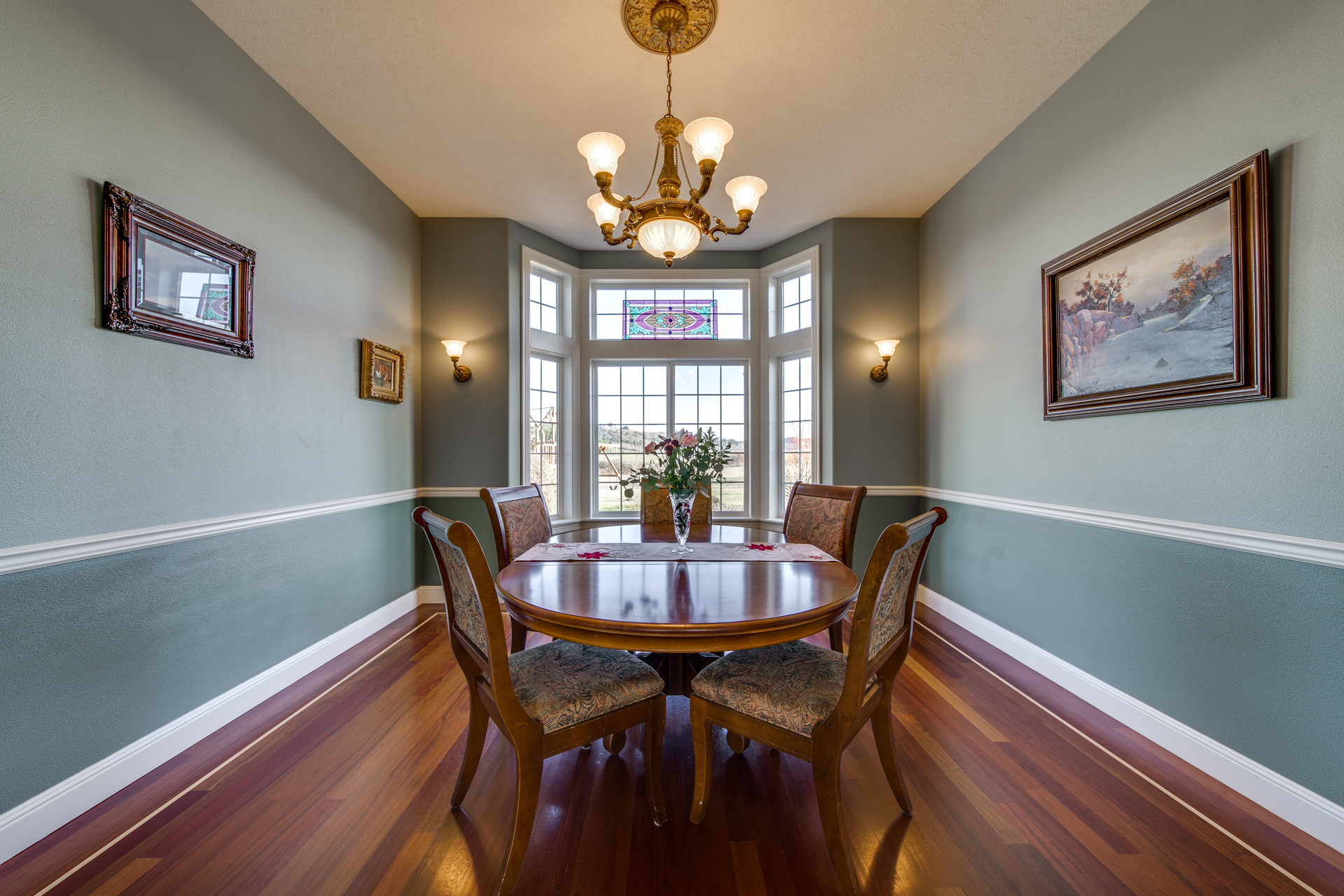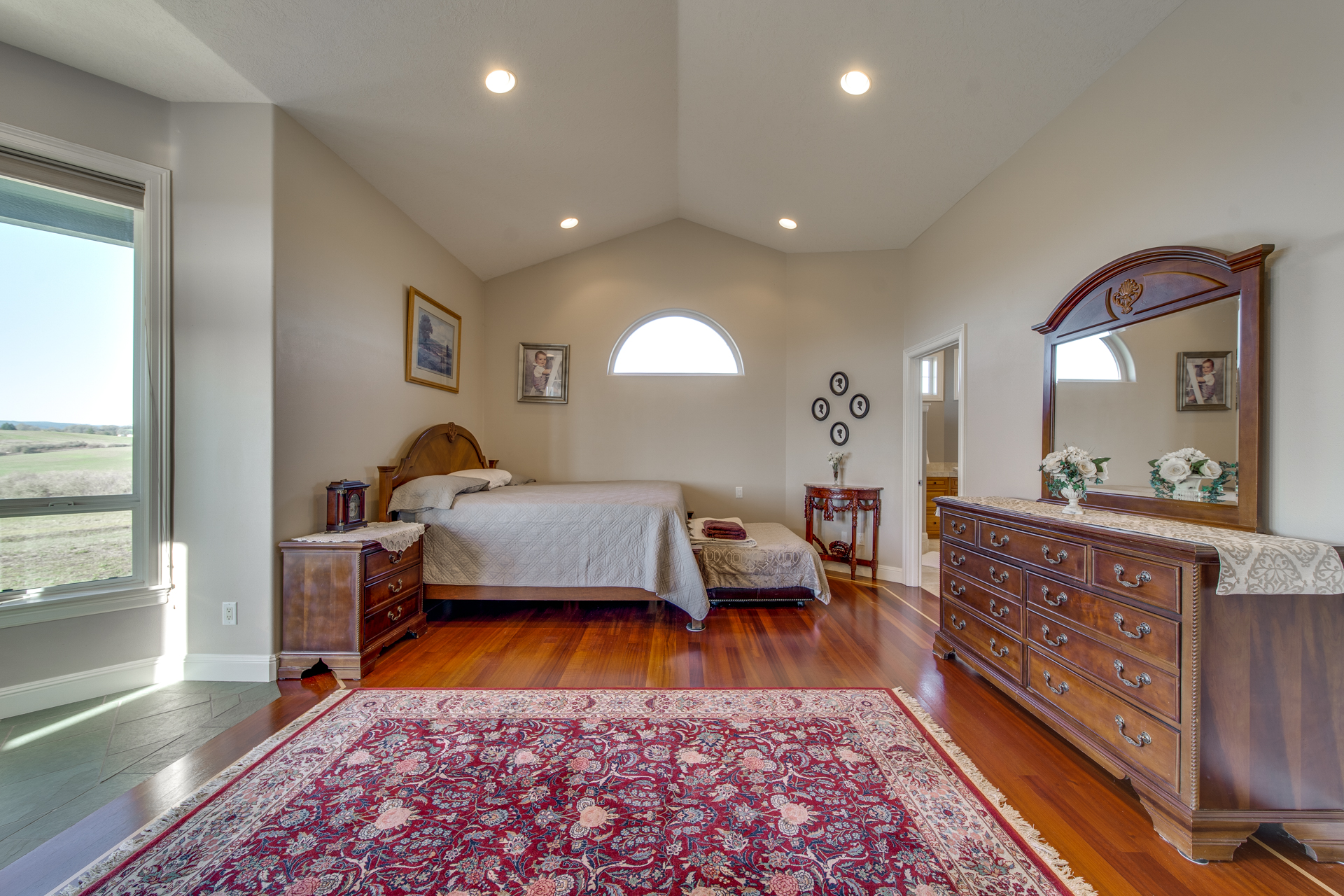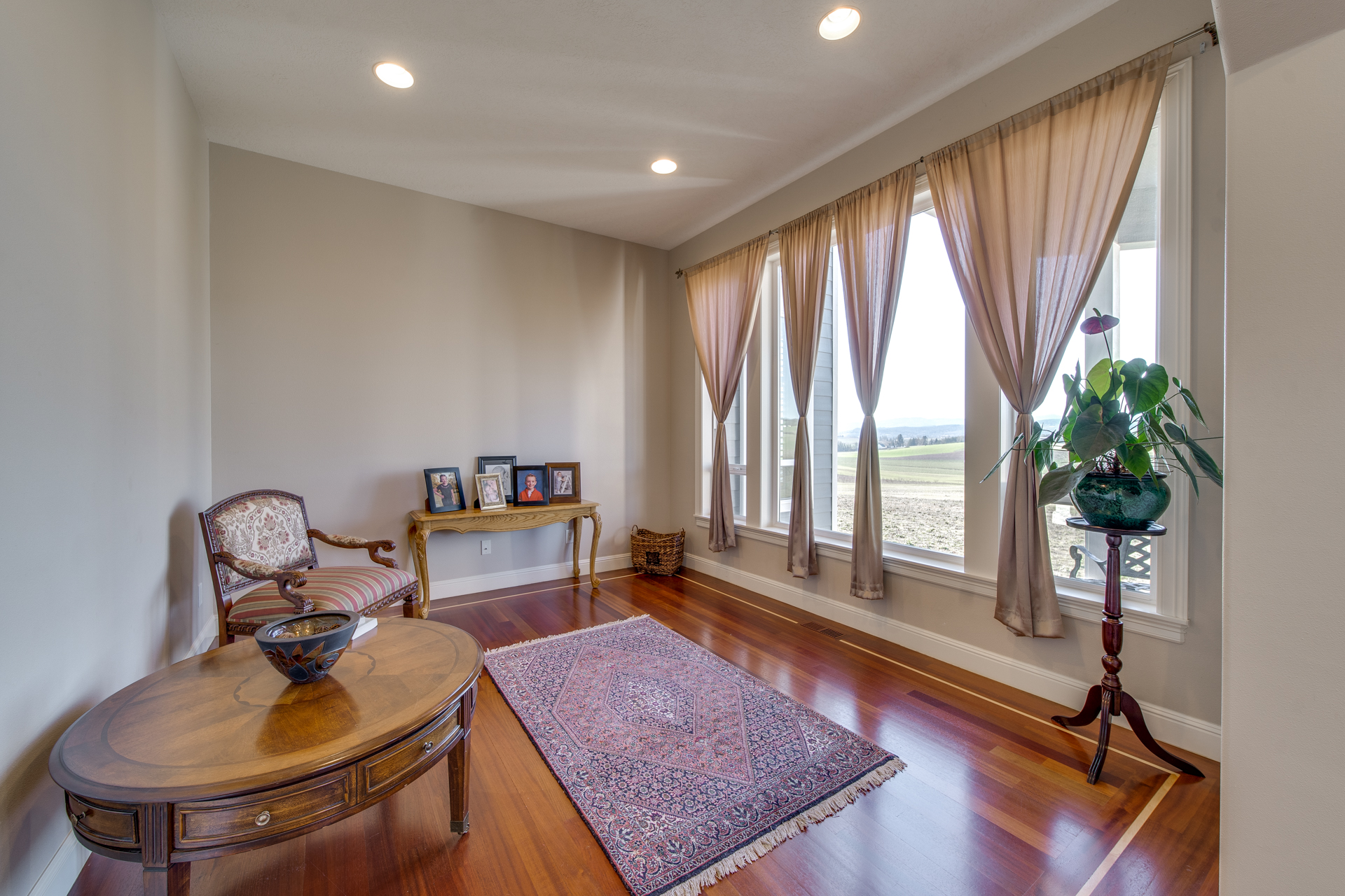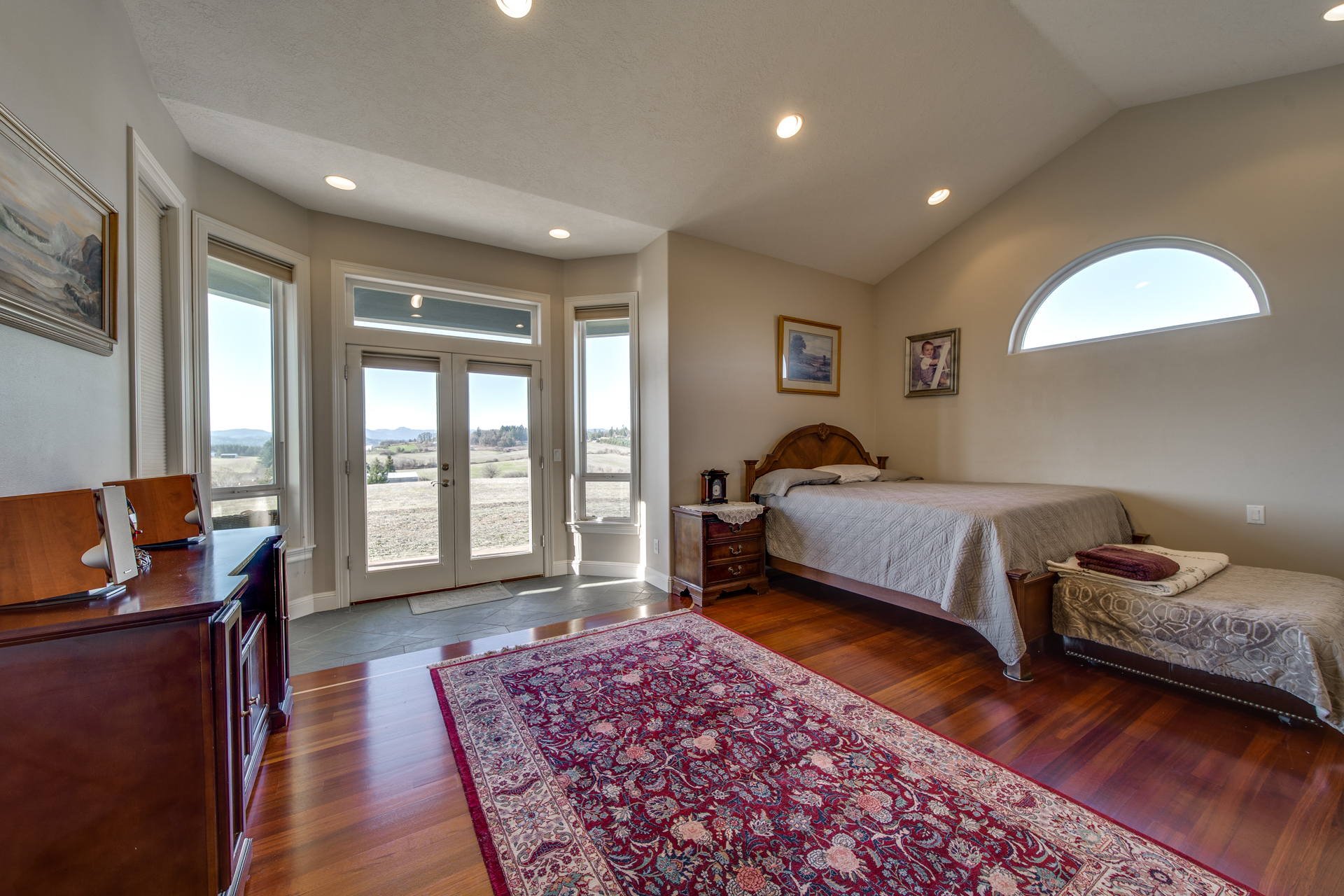 Meticulously built with the intention of maintaining an open concept lifestyle, this home is showered with miraculous views of the Willamette Valley. Upon entering the circle driveway and into the formal entryway, you will quickly notice the lustrous Brazilian cherry hardwood floors adding a subtle touch of warmth to the 5113 square foot home. Enter the living room with its gas fireplace working its embers, and you have a private escape place for conversation and relaxation. The kitchen is lined with cherry cabinets and granite countertops that set the perfect atmosphere for Sunday brunches or buffet-style dinners for the big get-together. The family room is spacious and the dining room offers its own space to make the family feel even closer.